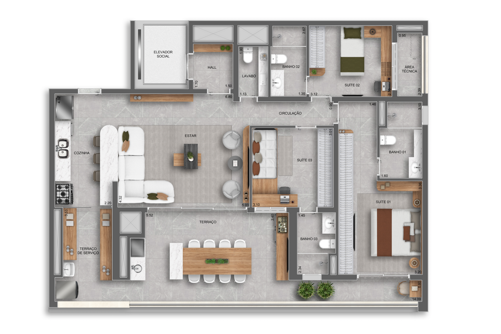 2 Dorms, 3 Dorms - Suítes:
