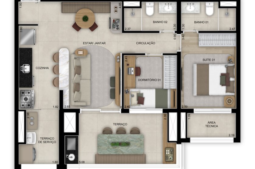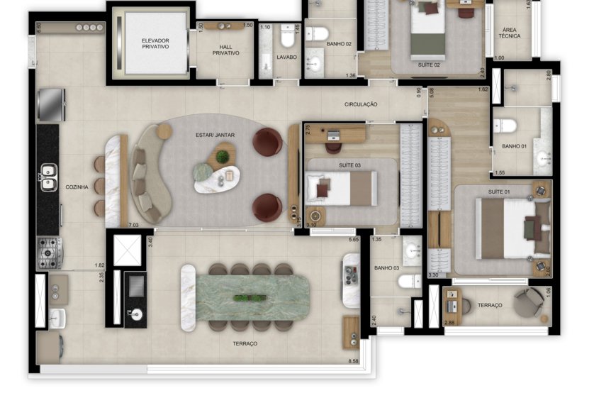 - Suítes: Sem Suíte, 1 Suíte, 3 Suítes