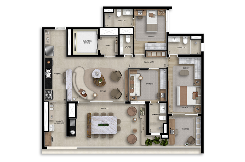 - Suítes: 3