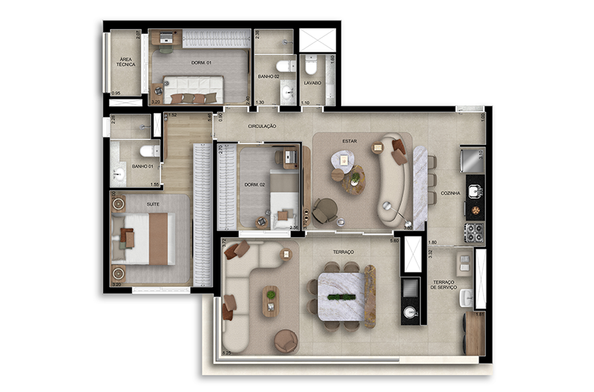 - Dormitórios:2 Dorms, 3 Dorms