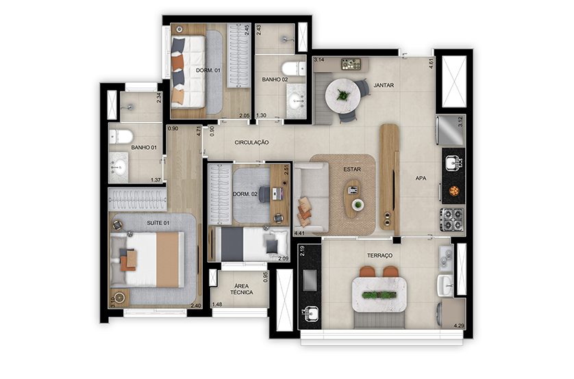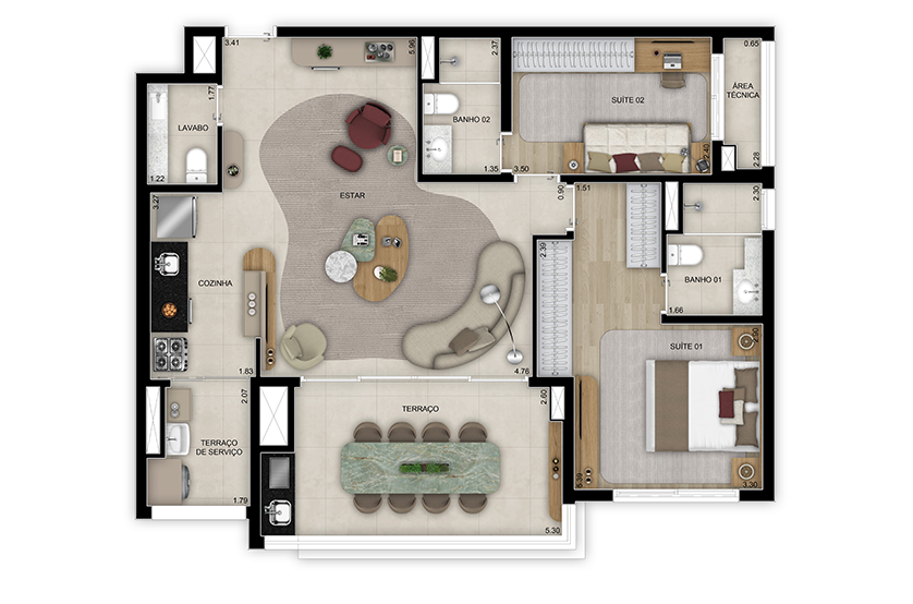 - Suítes: 1 Suíte, 2 Suítes, 3 Suítes, 4 Suítes