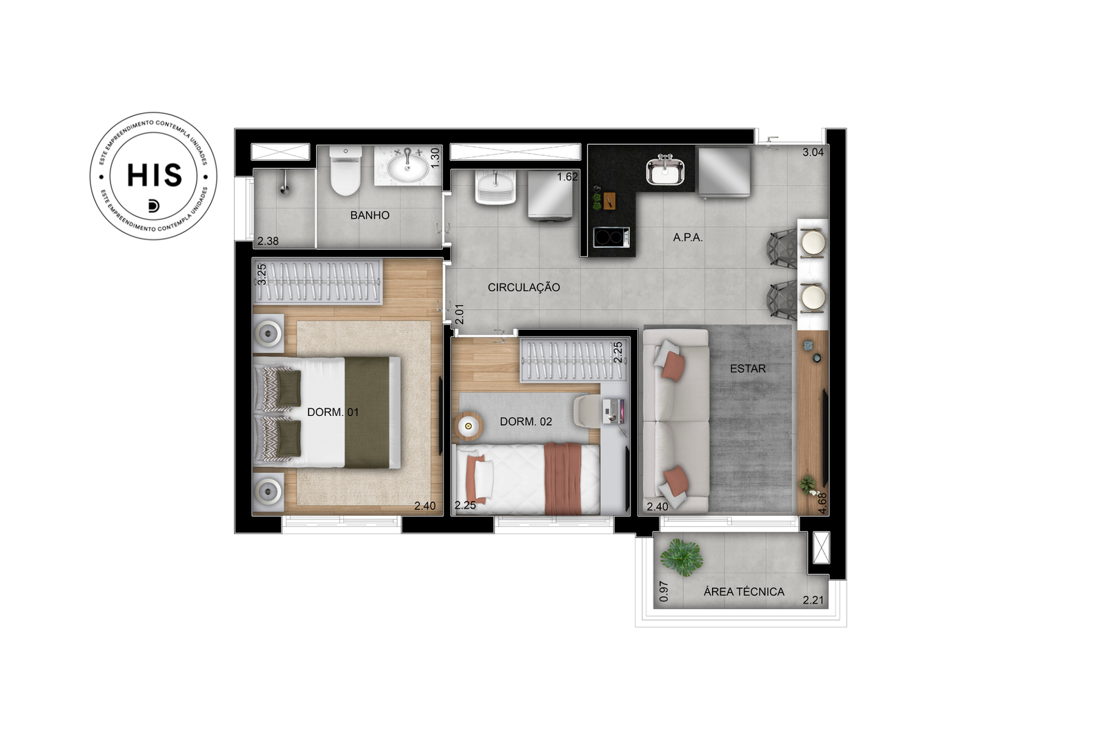 - Dormitórios: 2