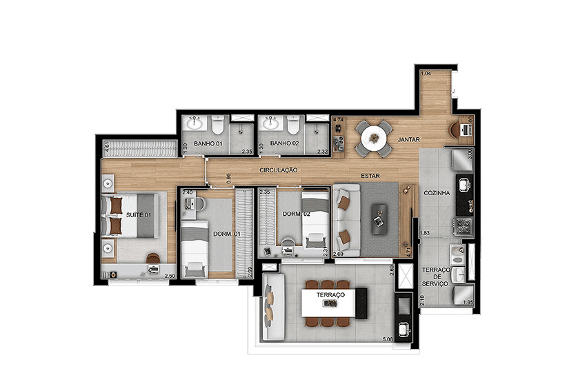 Sem Dormitórios, 2 Dorms, 3 Dorms - Suítes:
