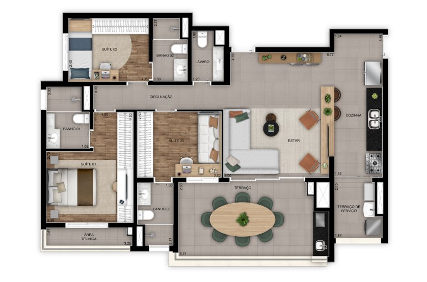 - Suítes:Sem Suíte, 1 Suíte, 3 Suítes