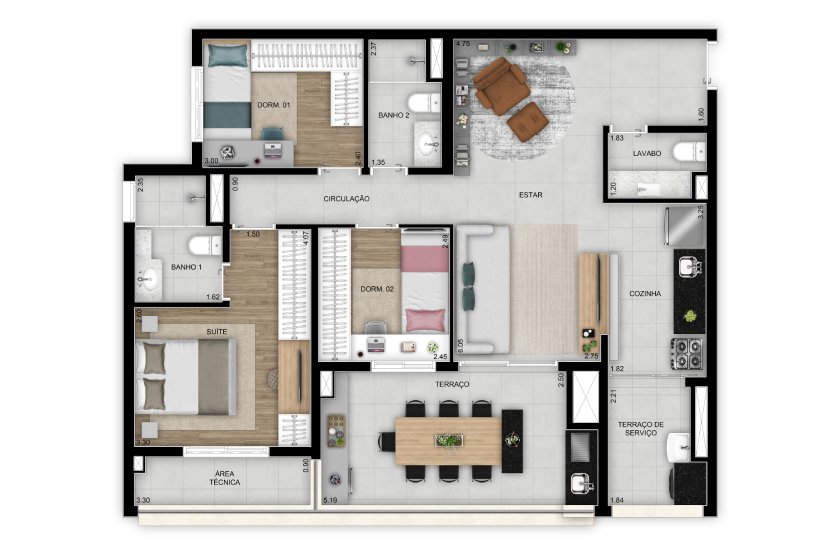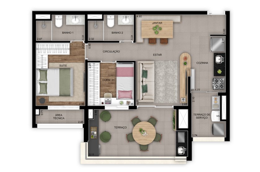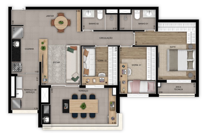 - Dormitórios:1 Dorm, 2 Dorms, 3 Dorms