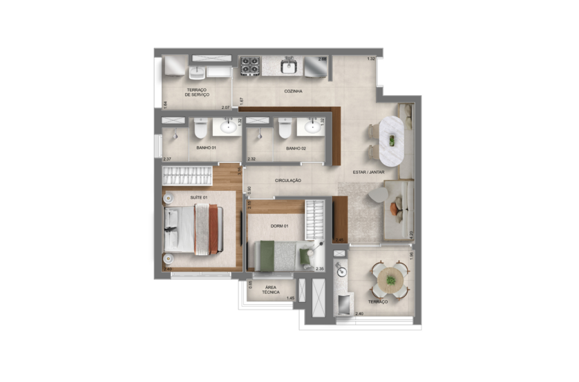 - Dormitórios: 2