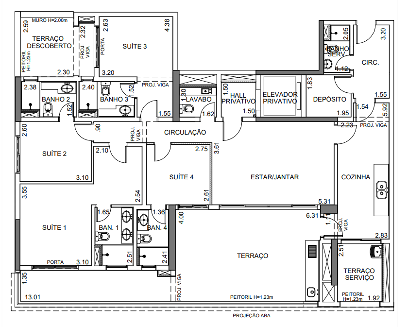 - Suítes: Sem Suíte, 1 Suíte, 3 Suítes, 4 Suítes