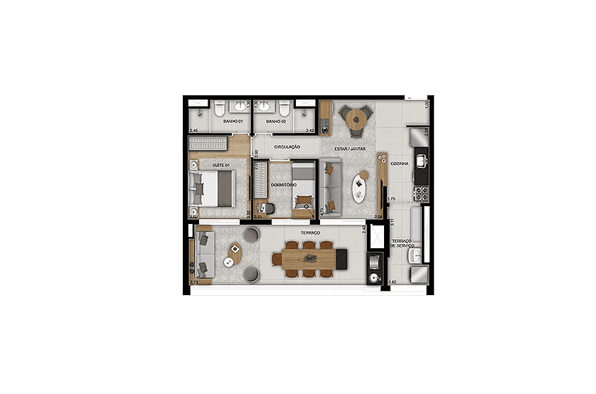 60, 75, 90, 96, 125 - Dormitórios: 2 Dorms, 3 Dorms