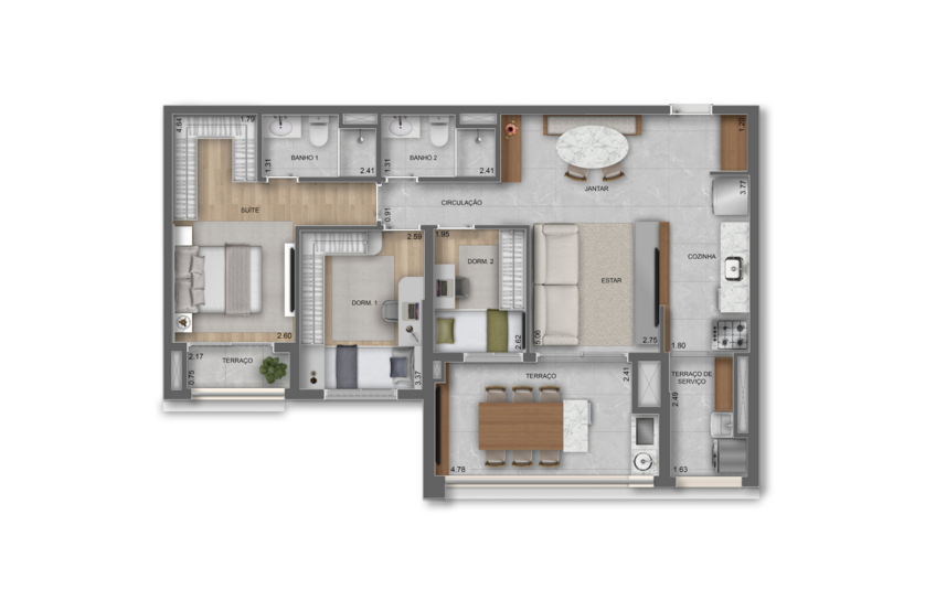 Sem Dormitórios, 2 Dorms, 3 Dorms - Suítes: