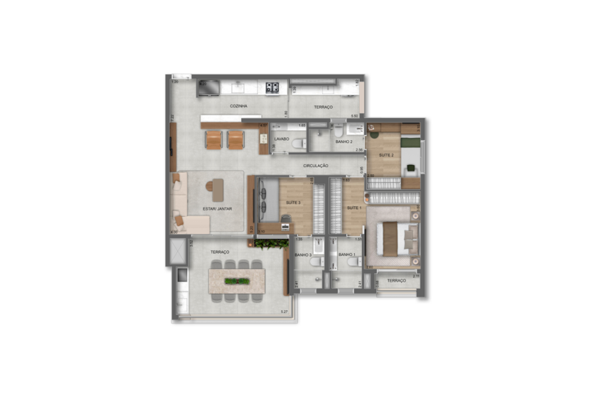 - Suítes: Sem Suíte, 1 Suíte, 3 Suítes