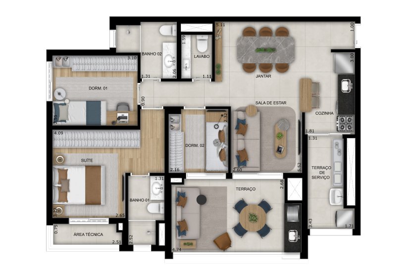 - Dormitórios:2 Dorms, 3 Dorms