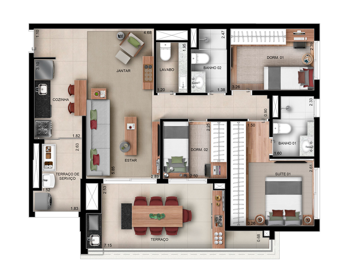 Sem Dormitórios, 2 Dorms, 3 Dorms - Suítes: