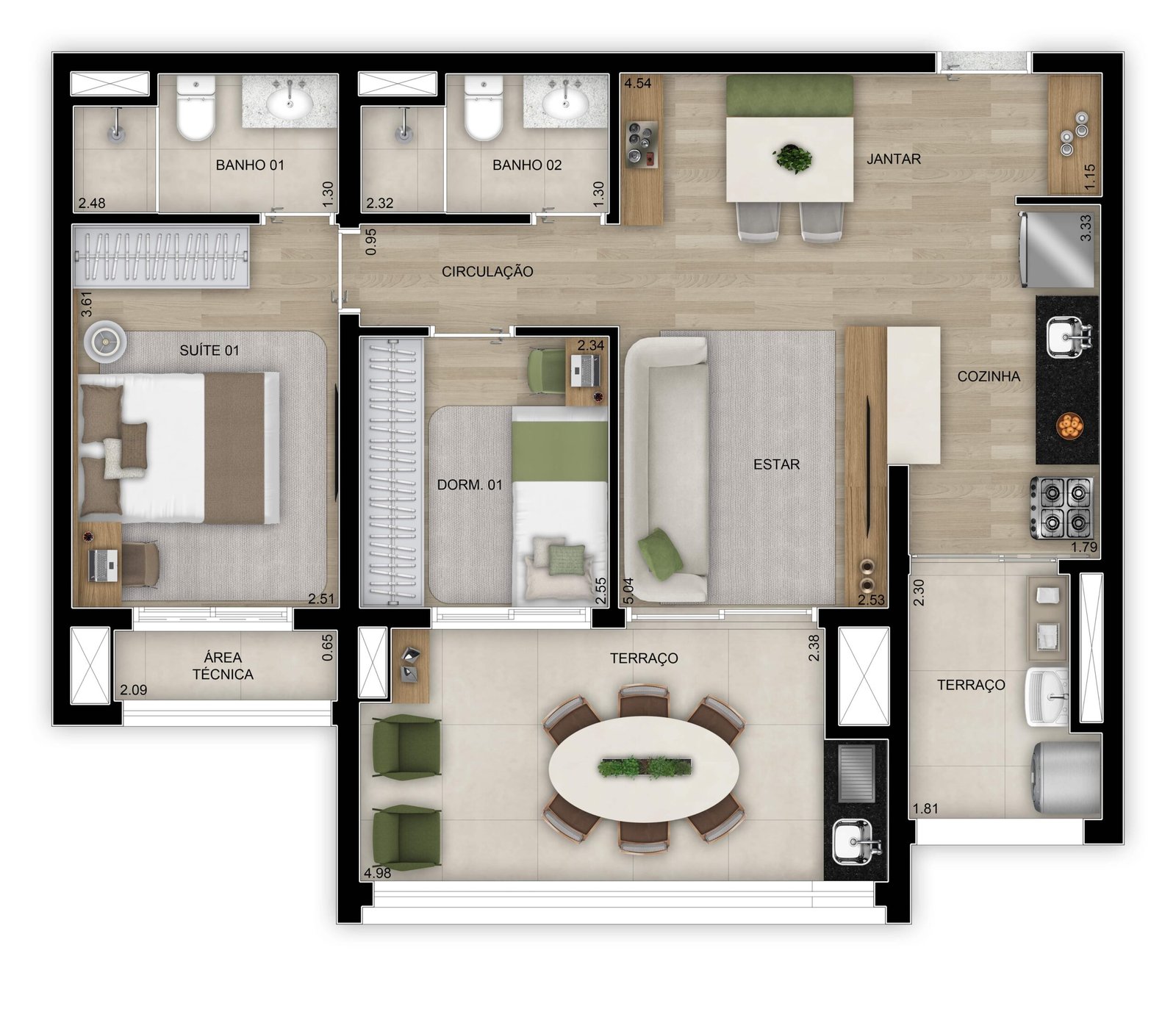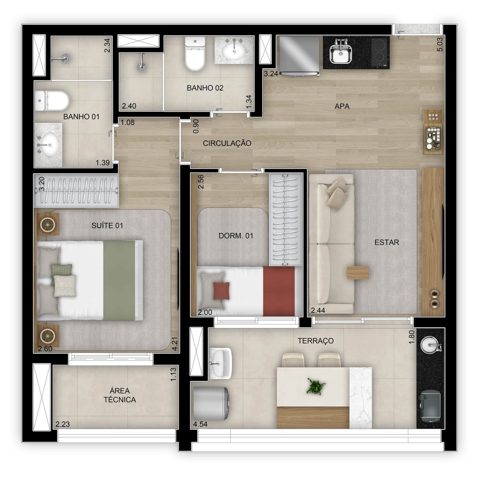 2 Dorms, 3 Dorms - Suítes: